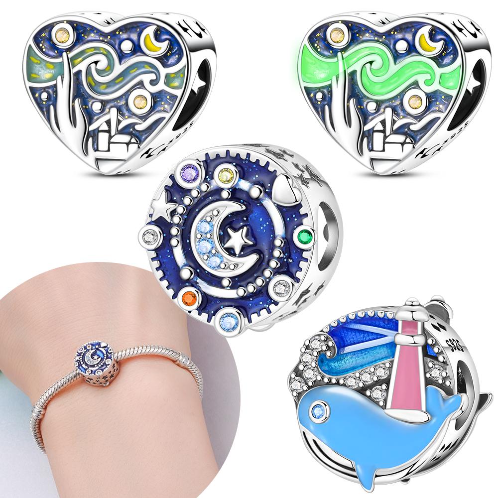 Original Copper Blue Ocean Heart Stars Starry Sky Moon Sun Bead String Beads Fit Bracelet Anniversary Gift Accessory Diy