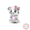 Copper Cute Flower Bear Cute Rose Bear Charms Pendants Fit Original Bracelets Diy Birthday Jewelry Gift