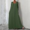 Women's Fashionable Solid Color V Neck Long Sleeved Casual Loose Fitting Pullover Long Dress