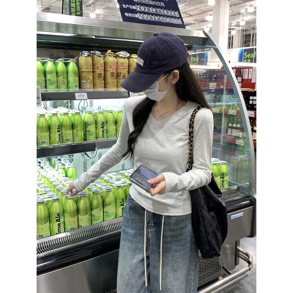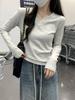 Front Shoulder Collar Slim-fitting and Thin Top Women's Spring Basic Long-sleeved T-shirt with Bottoming Shirt Versatile