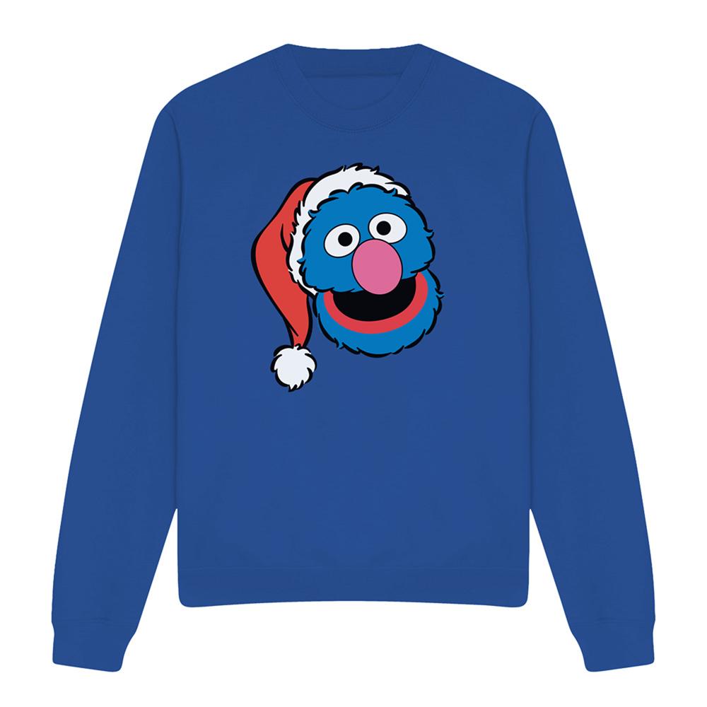 Sesame Street Unisex Adult Grover Santa Hat Christmas Sweatshirt