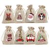 8Psc Christmas Burlap Goody Bags Drawstring Gift Bag Elk Santa Claus Xmas Party Decoration Supplies Christmas Stocking Favors
