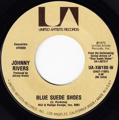 7inch Record JOHNNY RIVERS - Blue Suede Shoes / Stories To A Chi UAXW198W United Artists 1973 US Rock Used