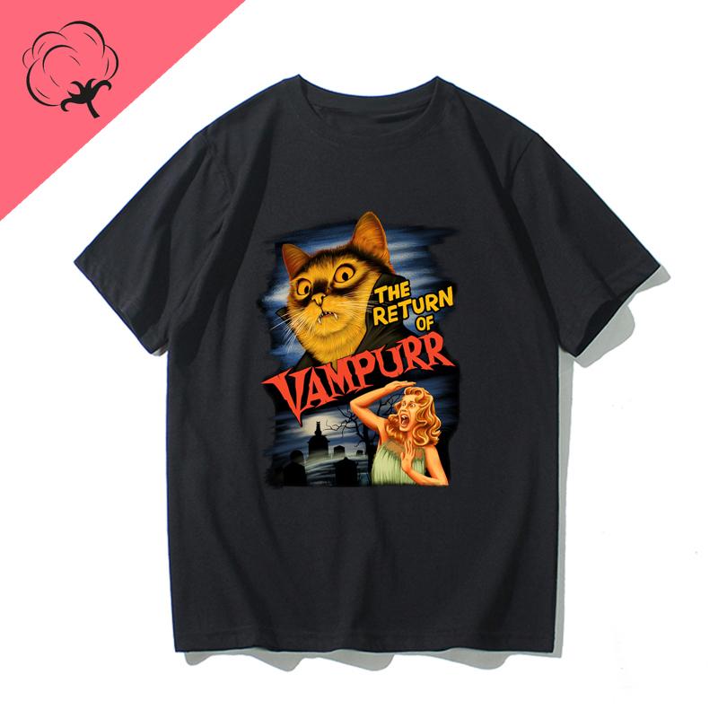 American Retro Short-sleeved T-shirt, Vampire Hong Kong-style Men's and Women's Trendy New Pure Cotton Camiseta
