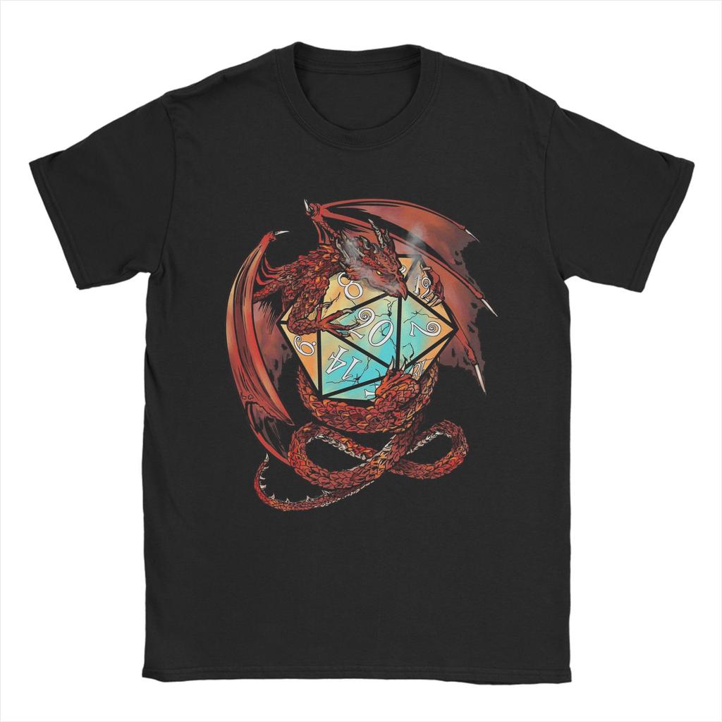 Red Dungeon Dragon DnD Dice T Shirt Men's Pure Cotton Leisure T-Shirt Round Neck Tee Shirt Short Sleeve Clothes Plus Size