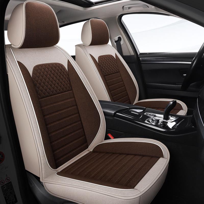 Universal Four Seasons Full Coverage Linen Seat Cushion Set for Small Cars