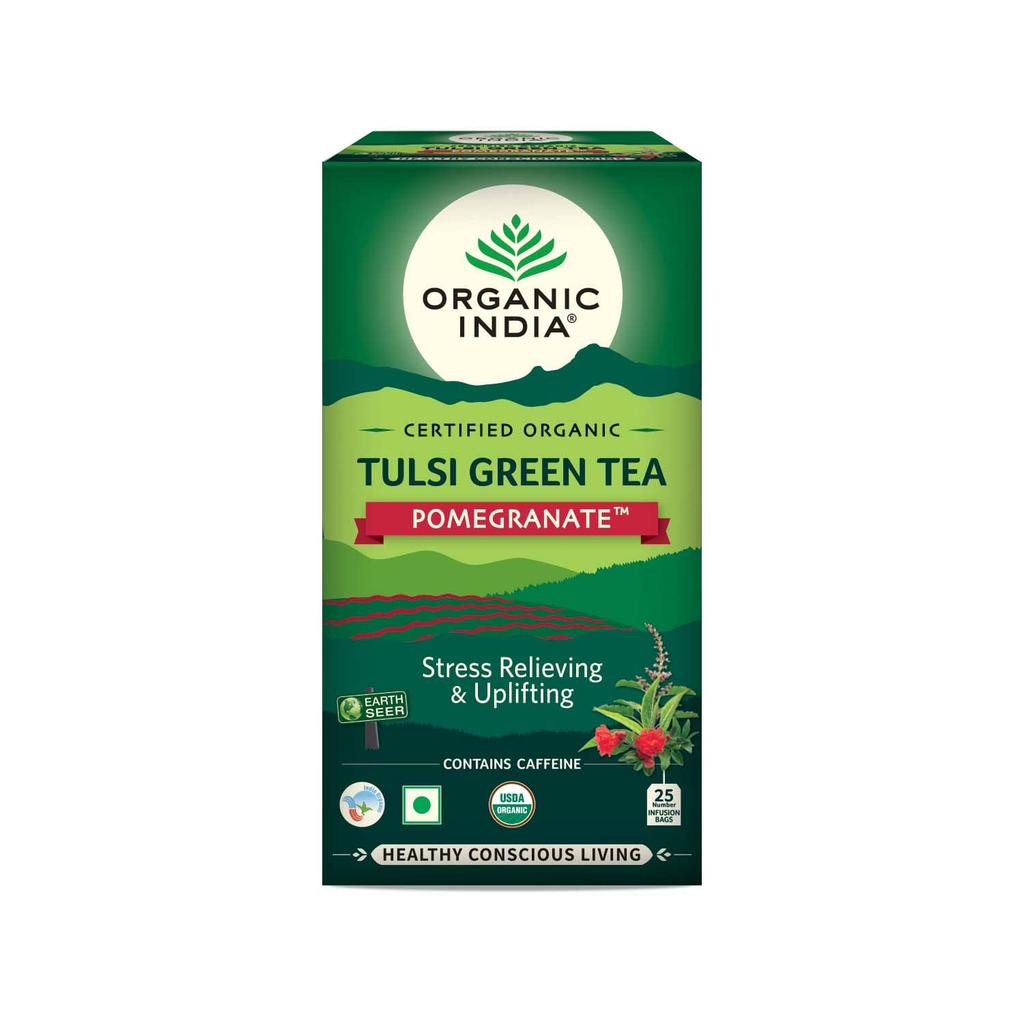 ORGANIC INDIA Tulsi Green Tea Pomegranate 25 Tea Bags & Tulsi Sweet Rose 25 Tea Bags Soothing Herbal Drink