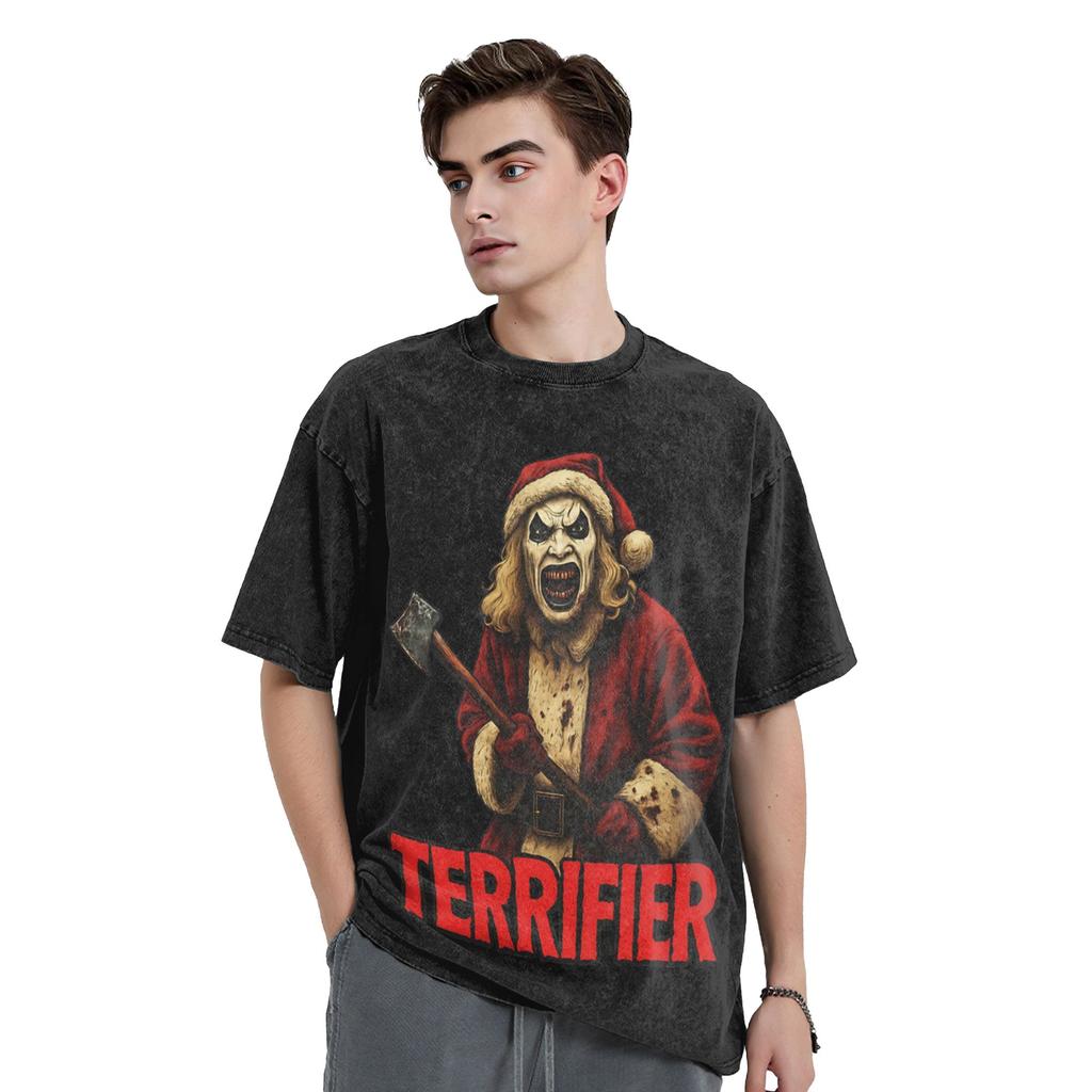 Art The Clown Terrifier Christmas T Shirt Washed Cotton T-Shirts Vintage for Men Women Streetwear Graphic Printed Tee Shirt