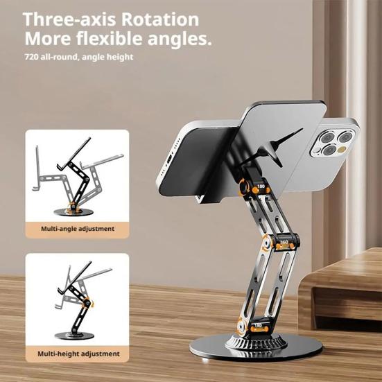 Introducing the foldable mobile phone holder, a space-saving solution that enhances your viewing experience. Say goodbye to neck strain and discomfort with its ergonomic design that promotes a comfortable posture. The innovative three-axis bracket provides unparalleled stability and flexibility, ensuring your device stays securely in place.