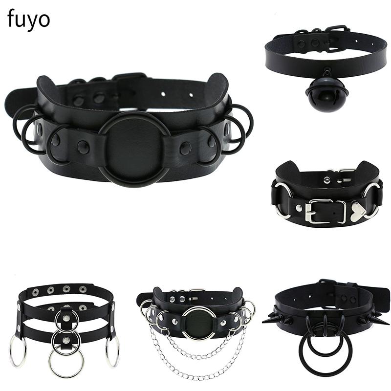 Punk Black Bell Lock PU Leather Necklaces for Women Cosplay Rock Geometry Rivet Collar Choker Necklaces Festival Jewelry
