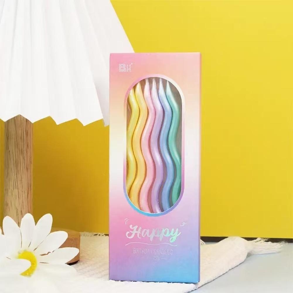 6 Pcs Spiral Twisted Birthday Candles, Rainbow Color Cake Candles with Metal Holders for Wedding Party Decoration