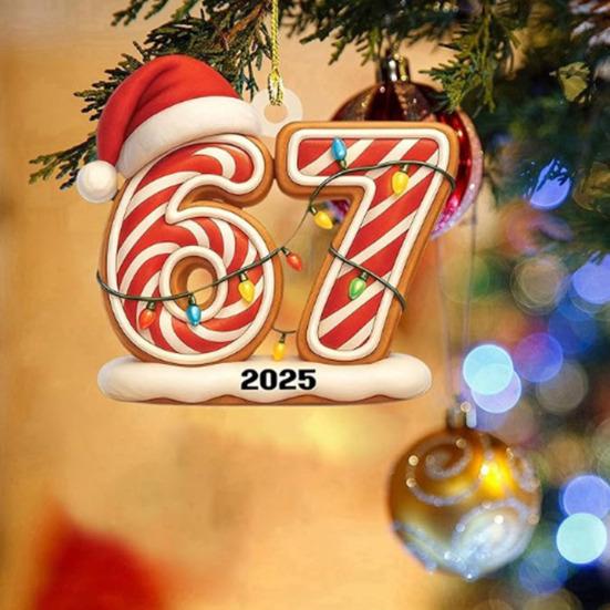 Showcasing the iconic ‘67’ style popular among teenagers, this whimsical ornament adds a touch of humor and modern internet culture to your holiday decor.