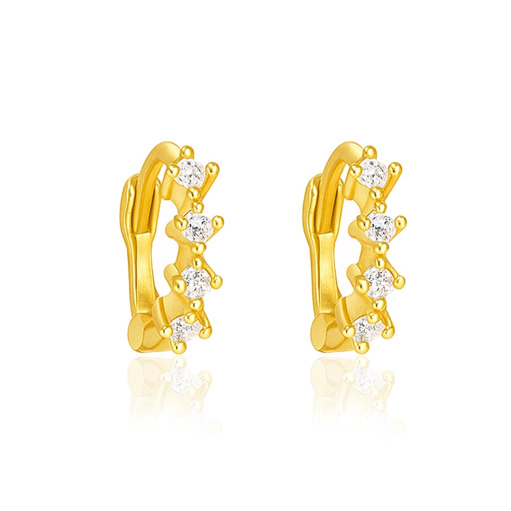 925 gold-plated sterling silver CZ mini hoop earrings in a modern cluster design. Elegant everyday hoops with brilliant sparkle and timeless charm.