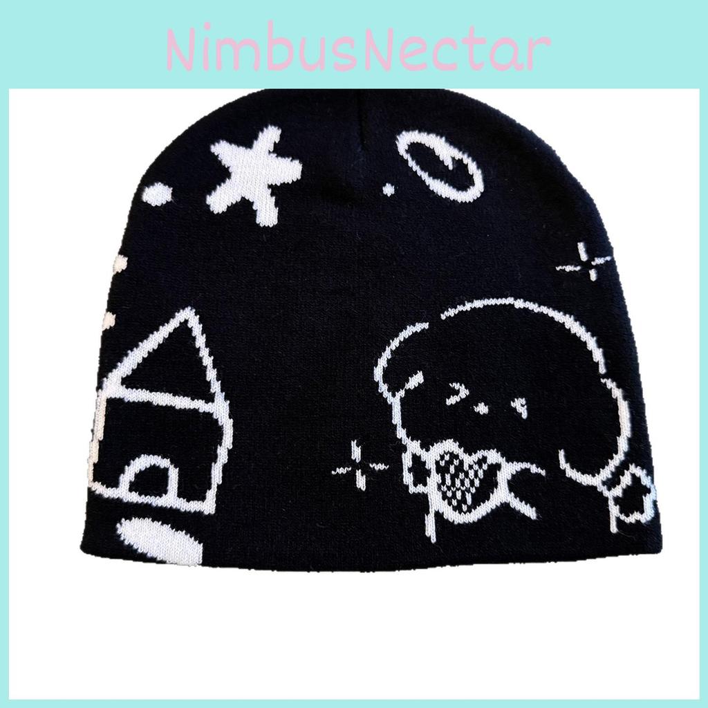 Childrens Knit Hat With Cartoon Dog Expression Knit Warm Headwear For Cold Seasons