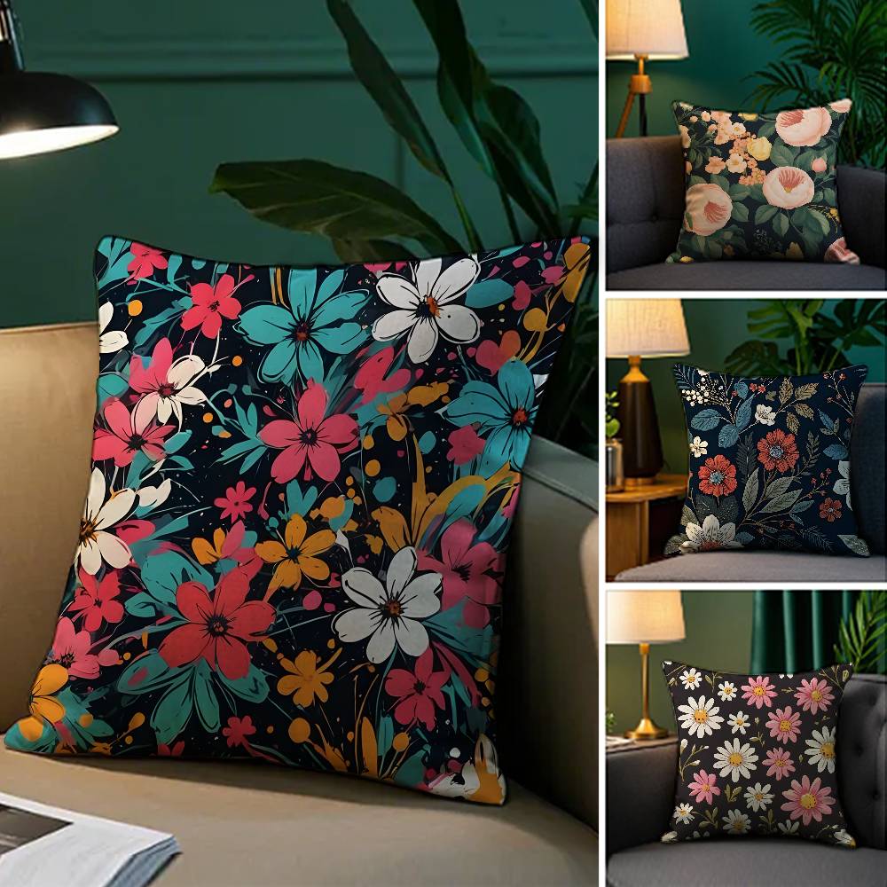 Colorful Flowers Pillow Case Plush Fabric Soft Pillowcase Double Sided Print Sofa Cushion Cover Throw