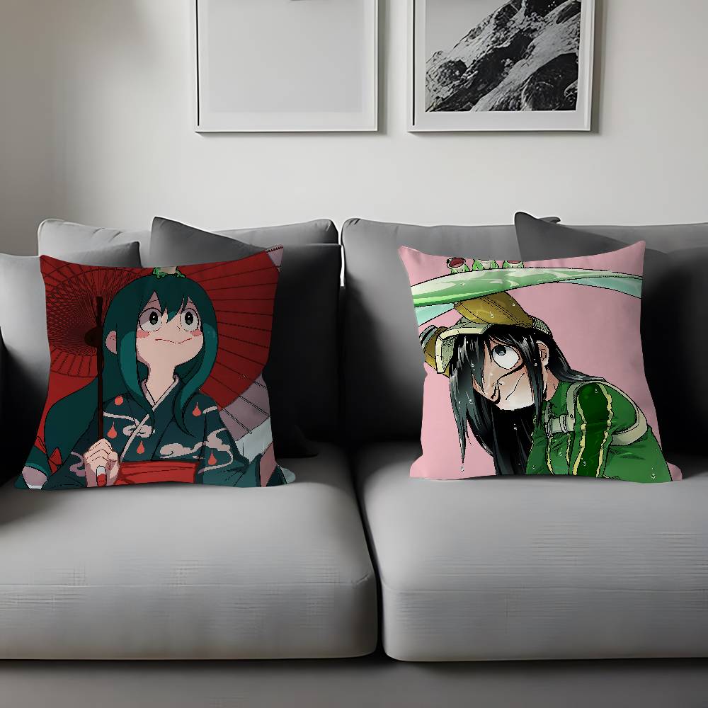 T-Tsuyu Asui Cartoon Animation Pillow Covers Cartoon Sofa Decorative Home Double-sided Printing Short Plush Cute Cushion Cover