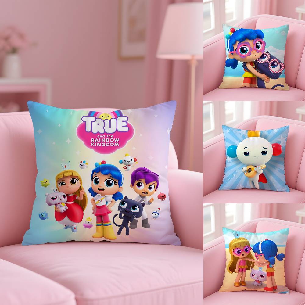 Kwaii True R-Rainbow Kingdom Pillow Case Anti-dustmite Pillowcase Invisible Zipper Silky Short Plush Sofa Cushion Cover