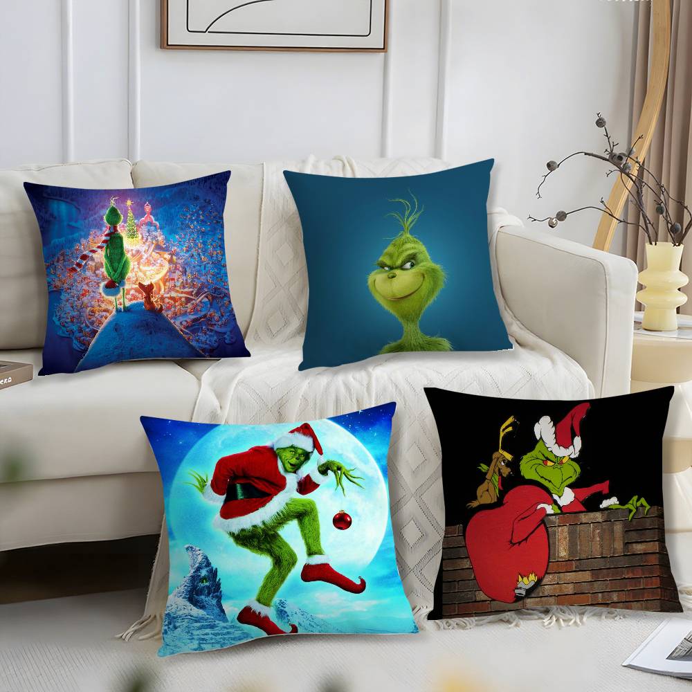 Cartoon Green Monster Pillow Case Short Plush Print Cushion Cover Square Throw Pillow Covers Sofa Home Decor