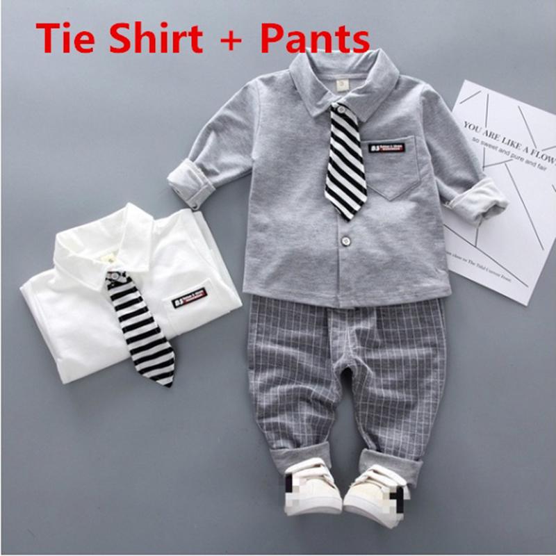 Boys Autumn Clothing Suit Kids Gentleman Boy Tie Shirt + Pants Toddler Baby Boys Outfits Clothes Set
