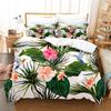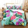 Pink Flamingo Duvet Cover Set Green Leaves Floral Animal Print Bedding Sets For Kids Girls Tropical Pattern Design Bedroom Decor