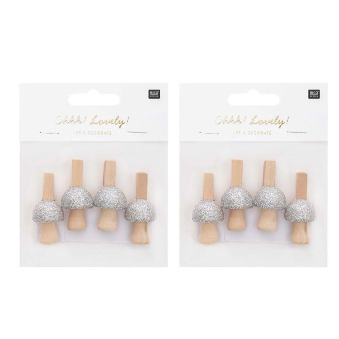 Pinces champignons - RICO DESIGN - 3 x 2,3 cm - Bois - Argenté - Décoratif Noël