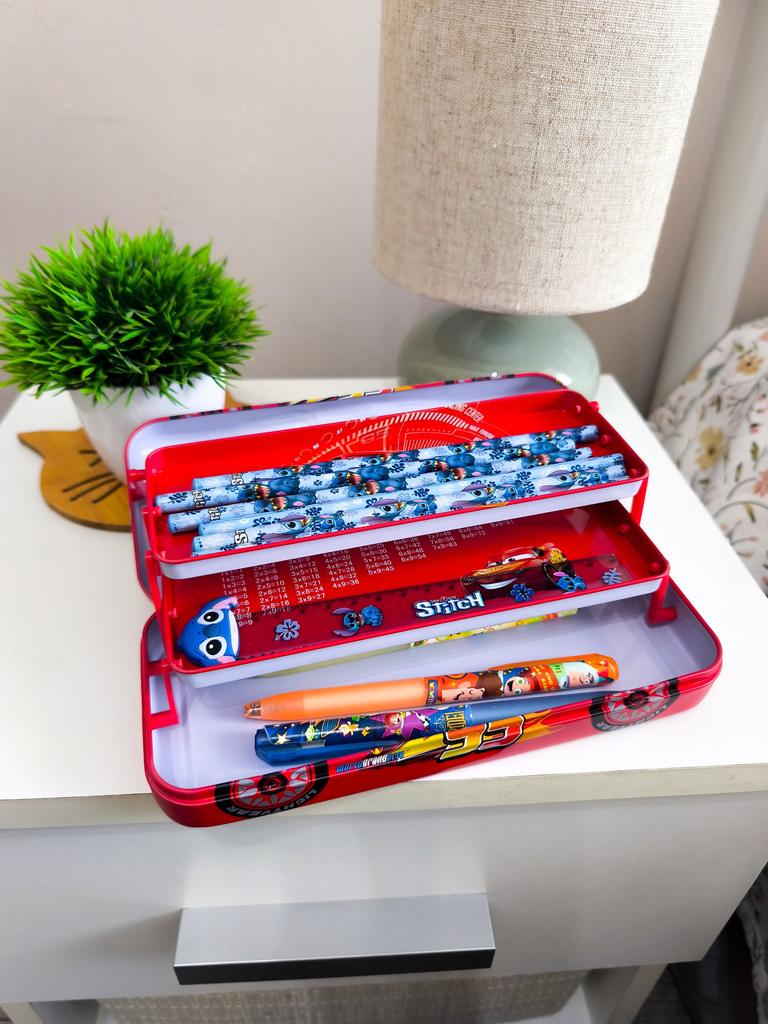 MINISO Cartoon Characters Three-layer Pencil Case Large Capacity Cartoon Car Stereo Pencil Case Learning Gift Multi-function Stationery