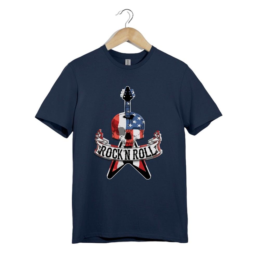 Rock N Roll Skull T-Shirt Unisex USA Flag Guitar Graphic Tee American Music Top