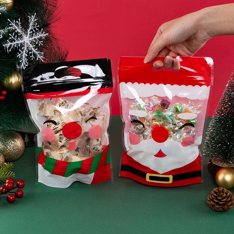 10Pcs Christmas Santa Face Handle Bags Candy Chocolate Cookie Nougat Biscuit Gift Wrapping Pouches