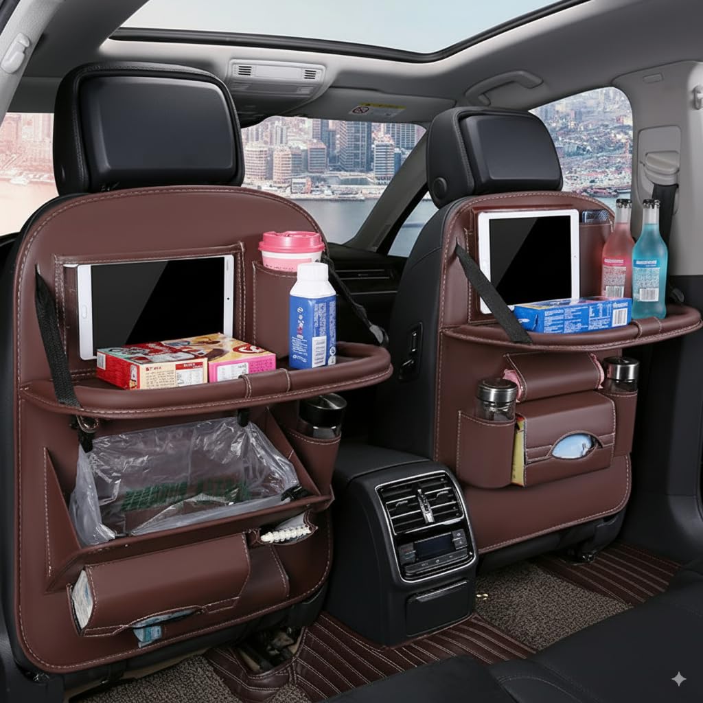ROTKUEIEE Foldable Car Seatback Pocket with Table for Rear Upgraded with Trash Can Cup Large Kick Multifunctional Seatback Waterproof and Easy Meal