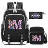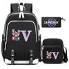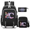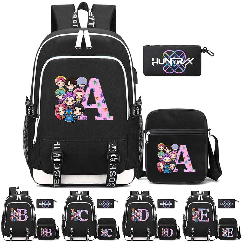 3Pcs/set 26 English Letter Kpop Printed Backpack with Shoulder Bag Pencil Case for Teenager Girl Boy Bookbag Large Capacity Waterproof Travel Bag