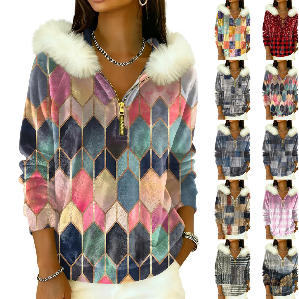 Women's Loose And Comfortable Casual Fashion Half-Zip Hooded Long Sleeve Conventional Printing Top