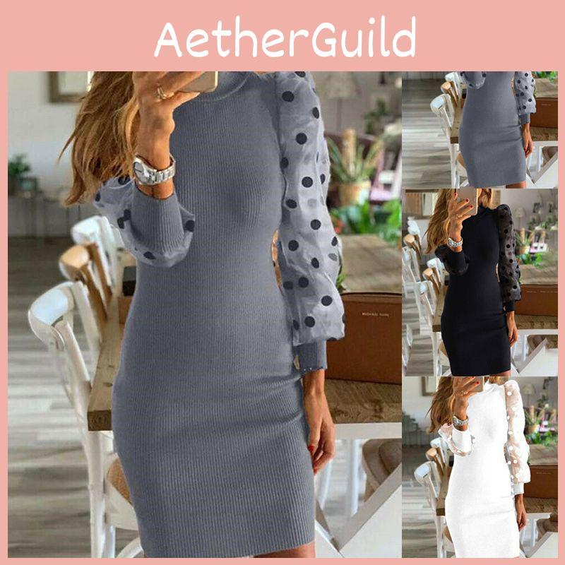 Elegant Women's Polka Dot Jumper With Long Net Yarn Sleeves For Flattering Bodycon Fit