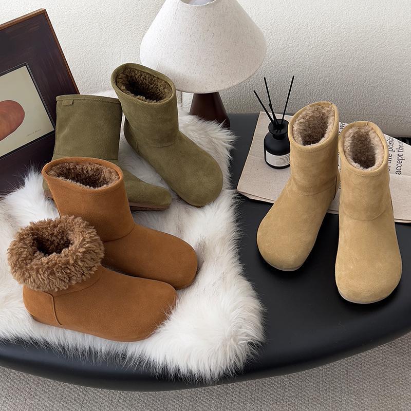 Hairy Big-headed Snow Boots Women's 2025 Winter Piled Thickened Short Boots Thermal Cotton Shoes