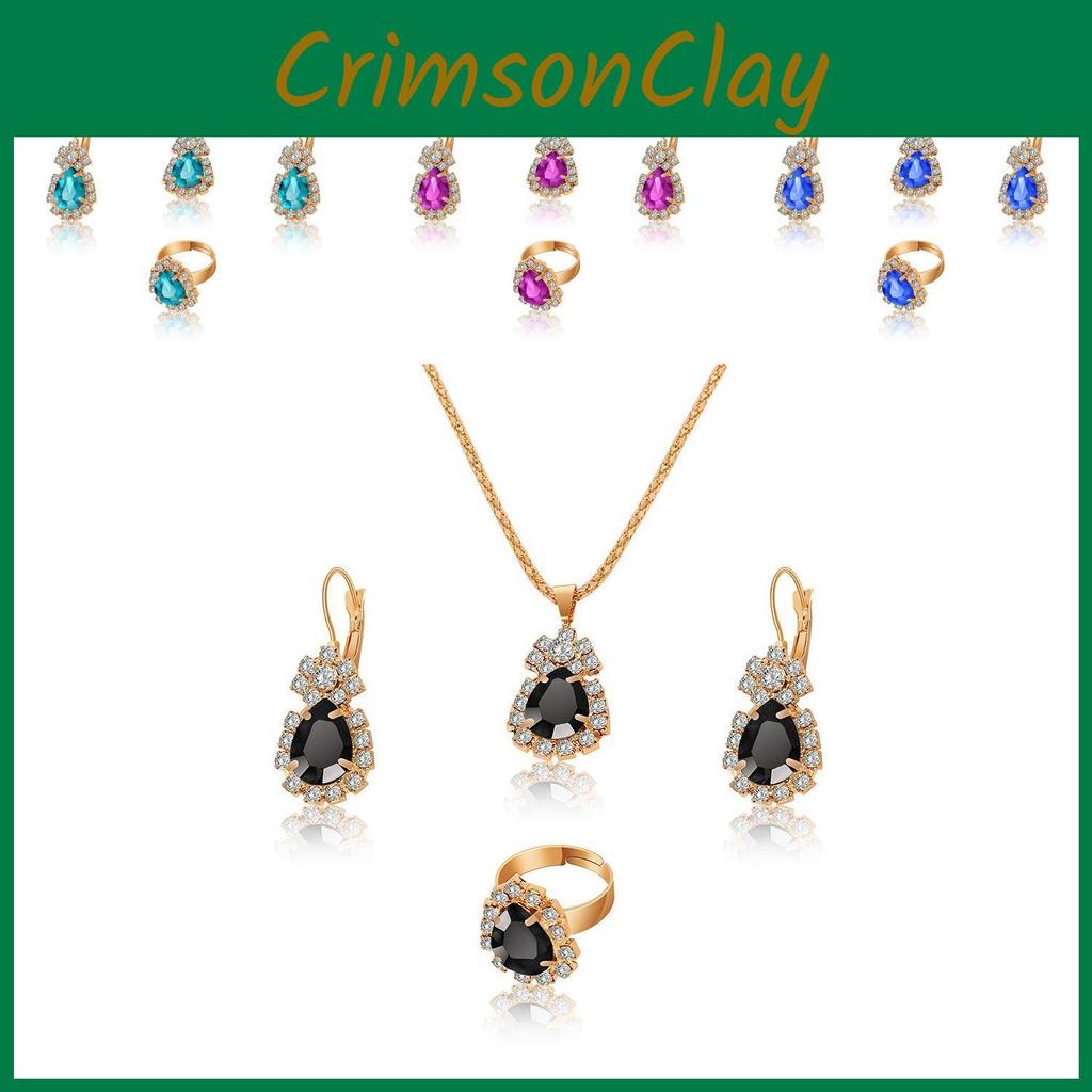 Wholesale Bridal Jewelry Set Ins Water Drop Rhinestone Necklace Earrings Ring Set