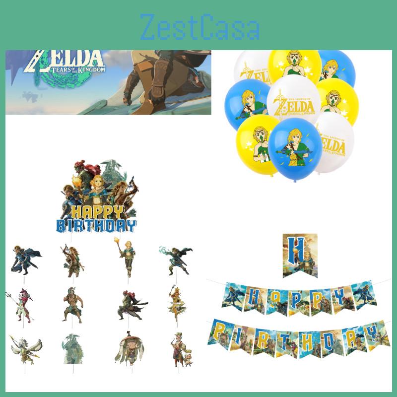 Celebrate your child's special day with the Zelda-themed birthday party decoration set! This party set includes a banner, cake topper, and 18 balloons, all featuring the iconic characters and symbols from the beloved Legend of Zelda game series.