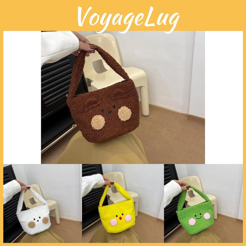 Adorable Plush Mini Shoulder Bag In White Yellow Green And Brown For Trendy Girls