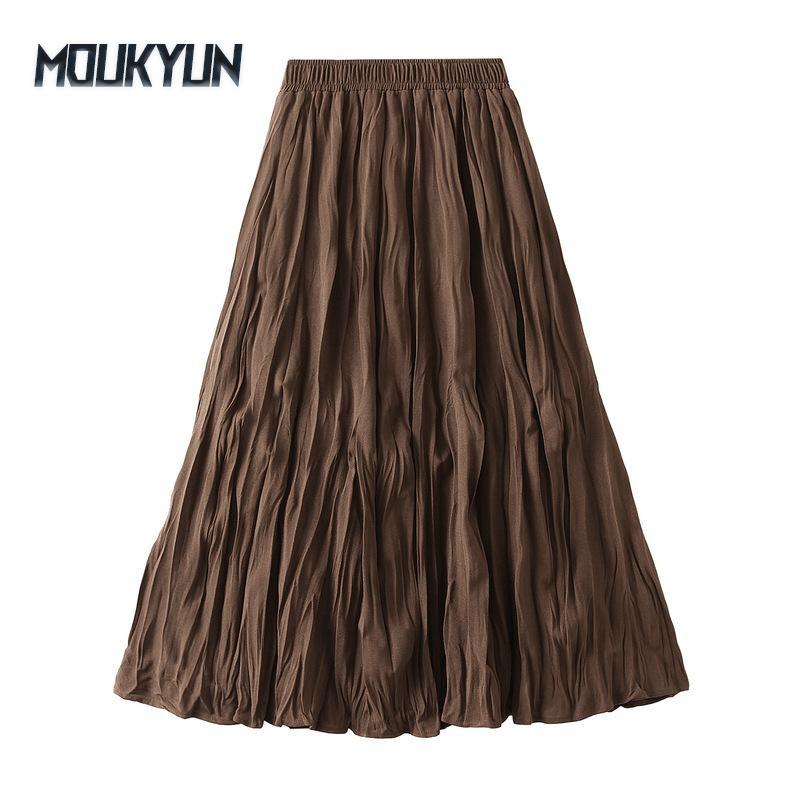 Spring and Autumn Women's Skirt High Waist Slim Messy Pleated Mid-Length Large Swing A-line Skirt Half-body Skirt