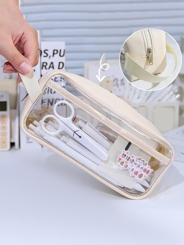 PVC Waterproof Pencil Case, Large Capacity Pen Case Organizer Zipper, Pencil Pouch Office Supplies, School Supplies Pencil Case
