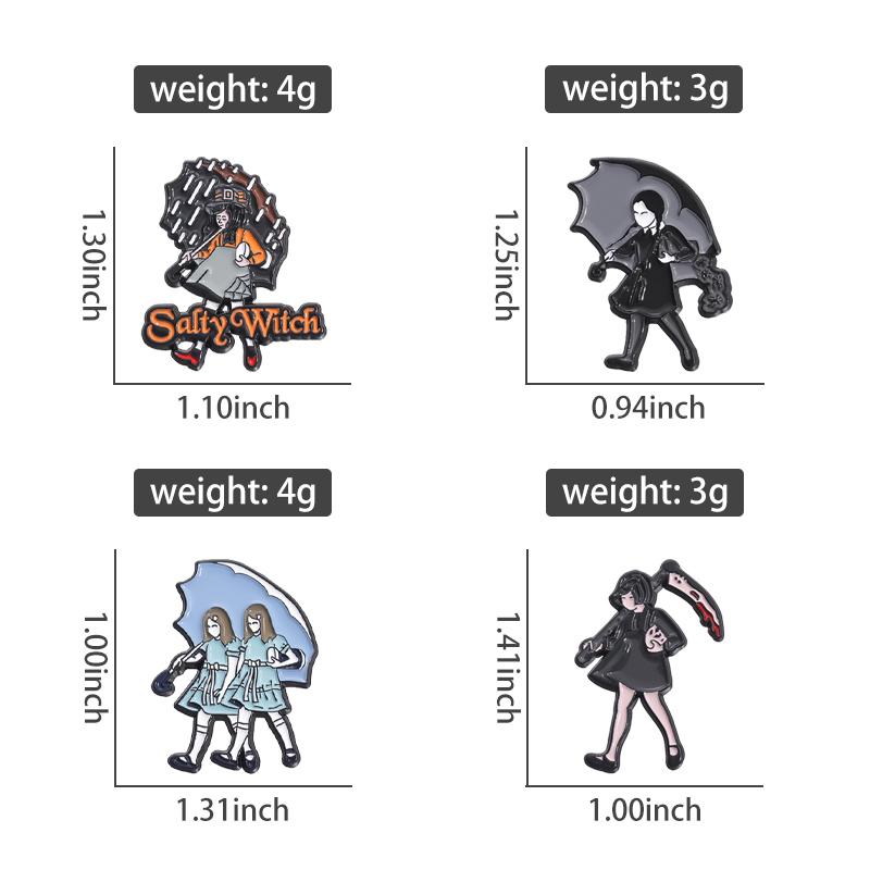 Horror Movie Enamel Pins Custom Salty Witch Girl Holding Umbrella Brooches Lapel Badges Punk Gothic Jewelry Gift for Friends