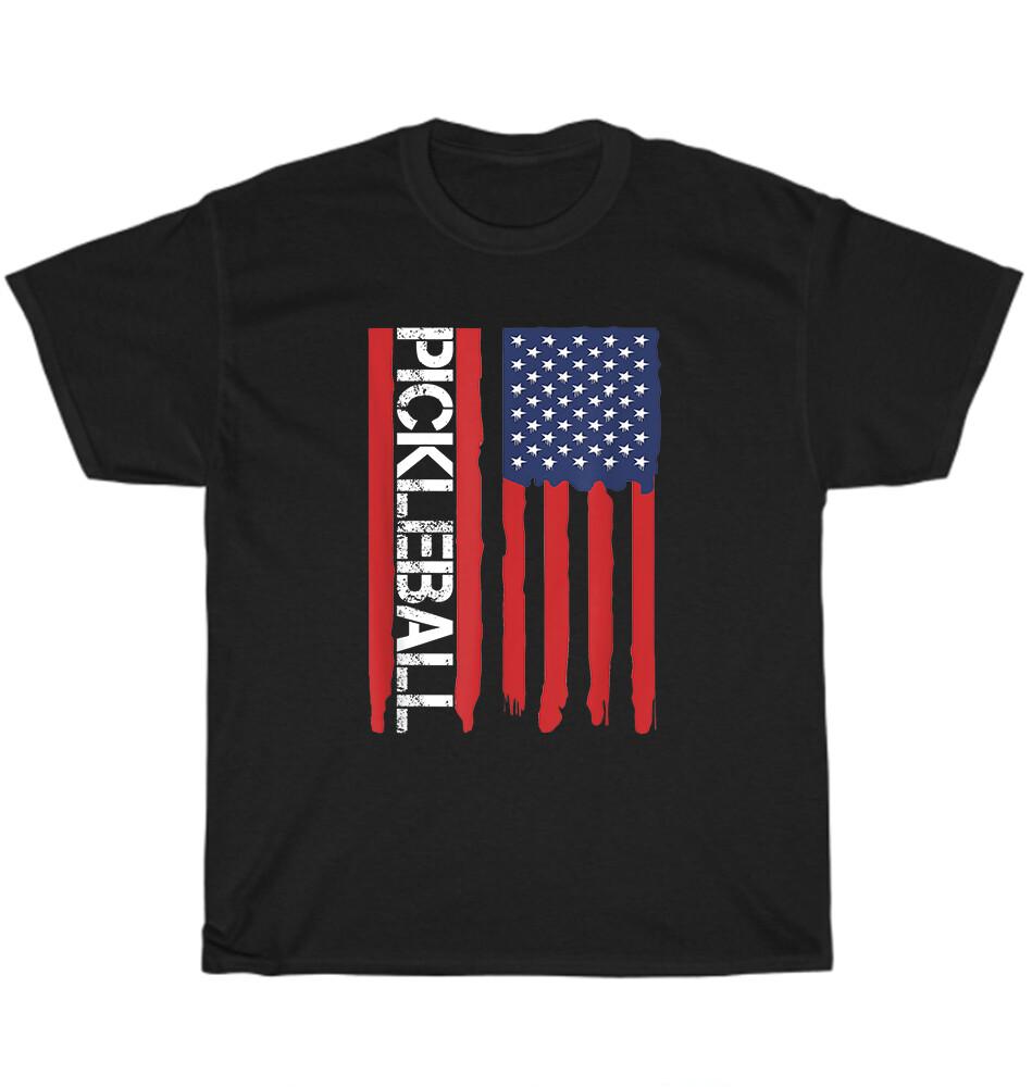 Pickleball Distressed American US Flag Patriotic Pickle Ball Player T-Shirt Gift