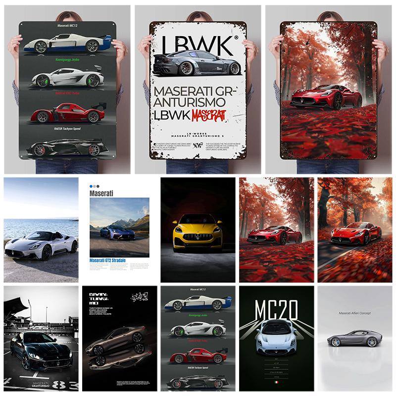 Maserati Classic Car Metal Poster Bedroom Decoration Living Room Decor Men Custom Metal Tin Signs for Garage Wall Art Decoration
