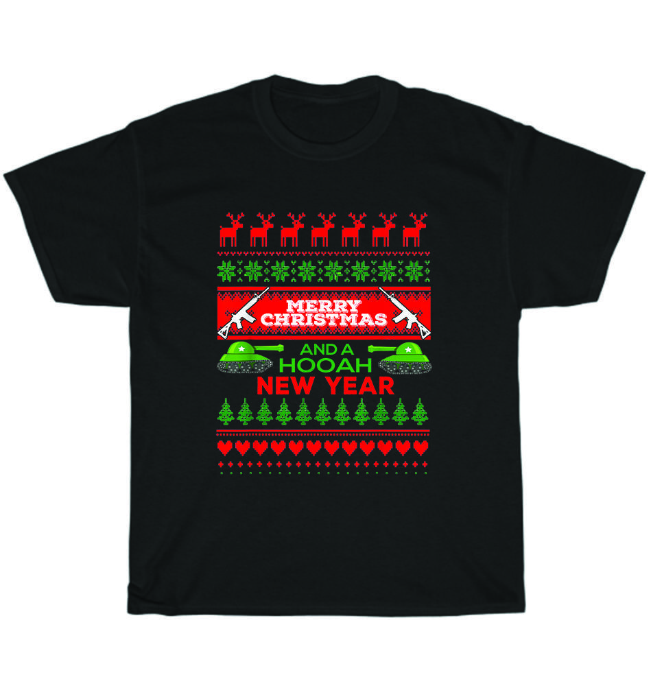 Military Army Ugly Christmas Sweater X-mas Pajama Party T-Shirt Unisex Tee Gift