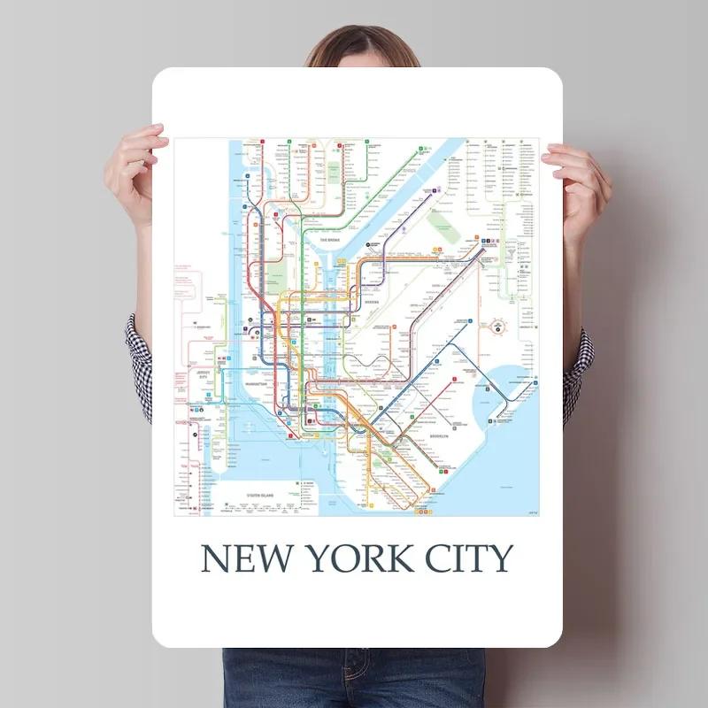 New York City Metro Map Poster Map Metal Sign Vintage Decoration Living Room Custom Tin Plaques for Wall Art Decoration Man Cave
