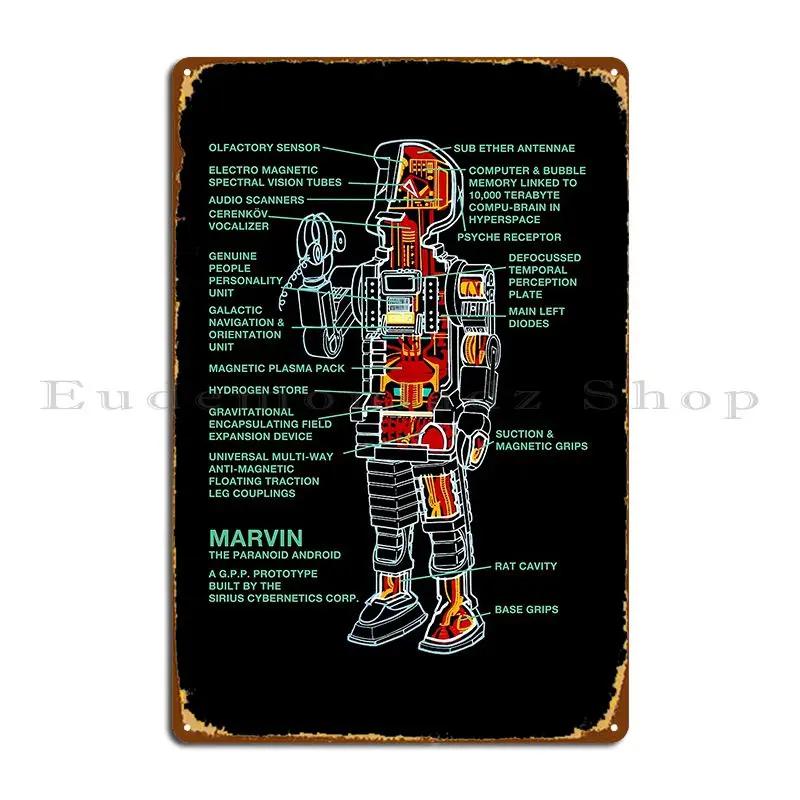 Marvin Paranoid Android Diagram Cross Section Metal Plaque Club Mural Custom Wall Mural Decoration Tin Sign Poster