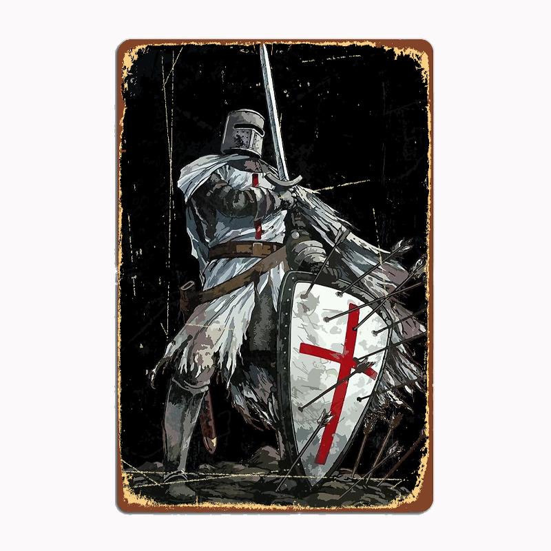 Templar Shield Cross Medieval Warrior Sword Knights Templar Armor Helmet Emblem Poster Metal Plaque Mural Plaques Wall Decor
