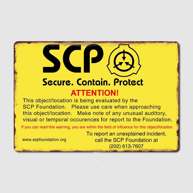 SCP Attention Yellow Sign Poster Metal Plaque Cinema Kitchen Mural Funny Wall Decor Tin Sign Posters Room Decor