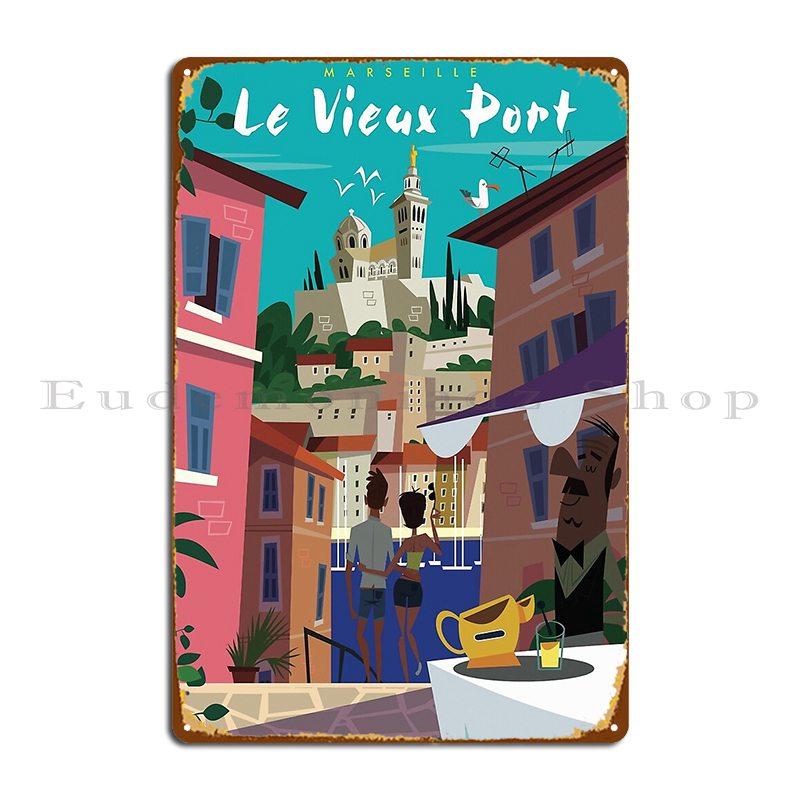 Marseille Le Vieux Port Poster Metal Plaque Poster Rusty Kitchen Vintage Character Kitchen Tin Sign Poster