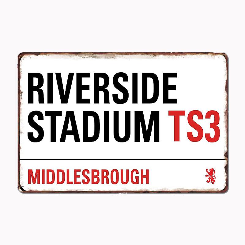 Riverside Stadium Middlesbrough Road Sign Retro Metal Sign Club Indoor Room Decor Custom Tin Home Wall Decor