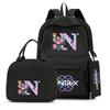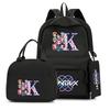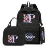 4Pcs/set 26 English Letter K-Pop Printed Backpack with Handbag Pencil Case for Teenager Student Boy Girl Schoolbag Bookbag Large Capacity Travel Bag