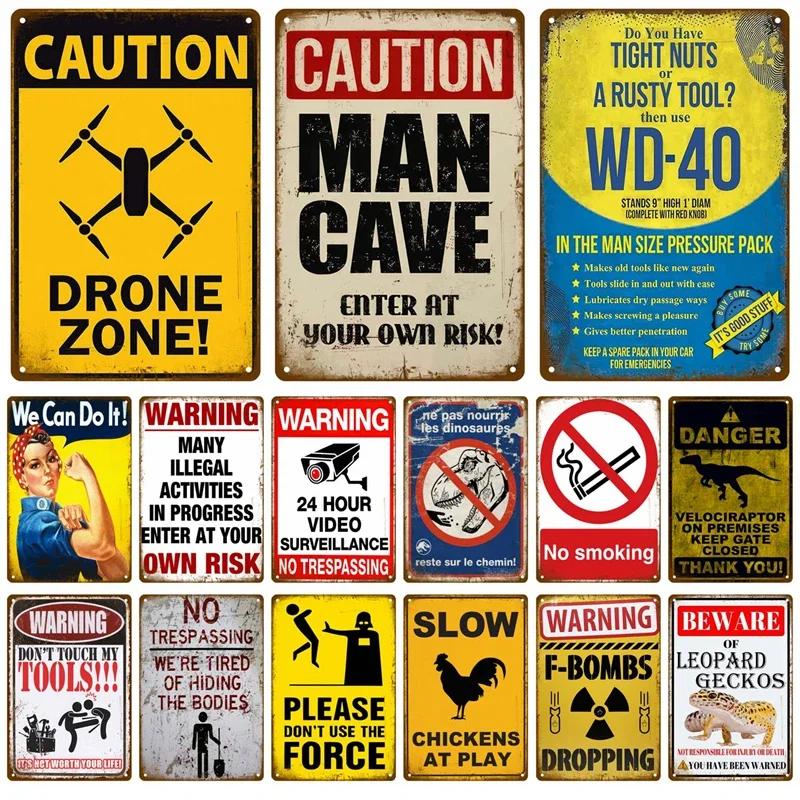 Vintage Retro Warning Tin Signs Metal Caution Sign for Cafe Club Man Cave Pub Home Bars Coffee Shop Wall Decor Art for Home